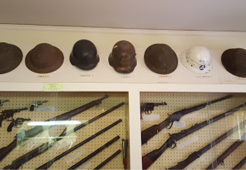 This room houses our collection of weaponry, although not all are military, all are old and collectable.  The room also displays many military uniforms, helmets and other military memoribilia.  The premier element in this room is a very large (9 ft by 12 ft) Japanese flag, our provenance for this flag states that it was given to General Douglas McArthur on the battleship Missouri.  McArthur then gave it to his Aide, Colonel Ted Beeman, who was from Jamestown.  Beeman then gave it to Bud Murphy for the museum.  We can’t prove it to be fact but the circumstantial evidence points to the authenticity of the story.
