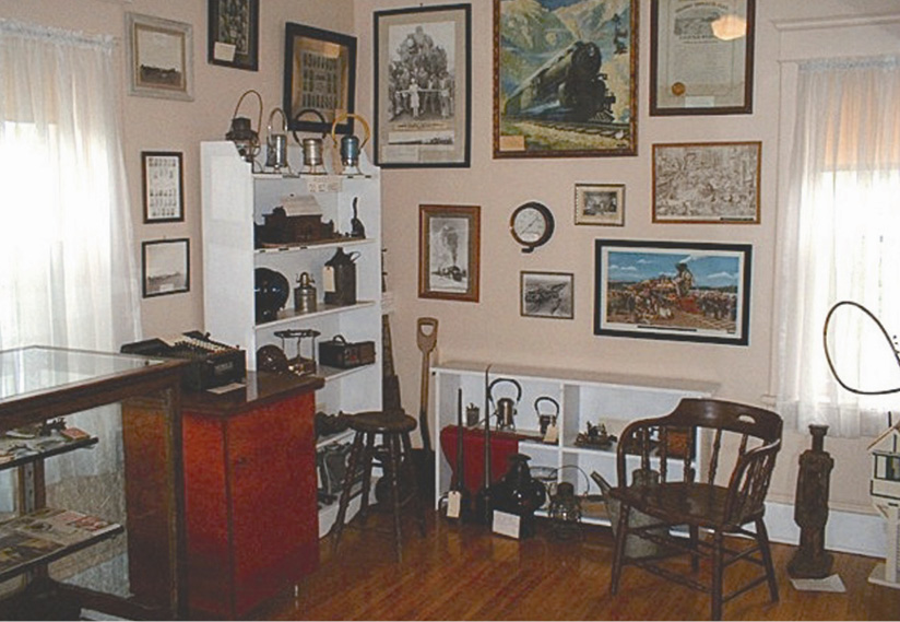 This room is located in the northeast corner of the second floor, it houses our collection of railroad memorabilia.  Much of the Bud Koon collection of steam engine photos and other memoribilia are housed here as are many items from former conductors and other railroad workers.