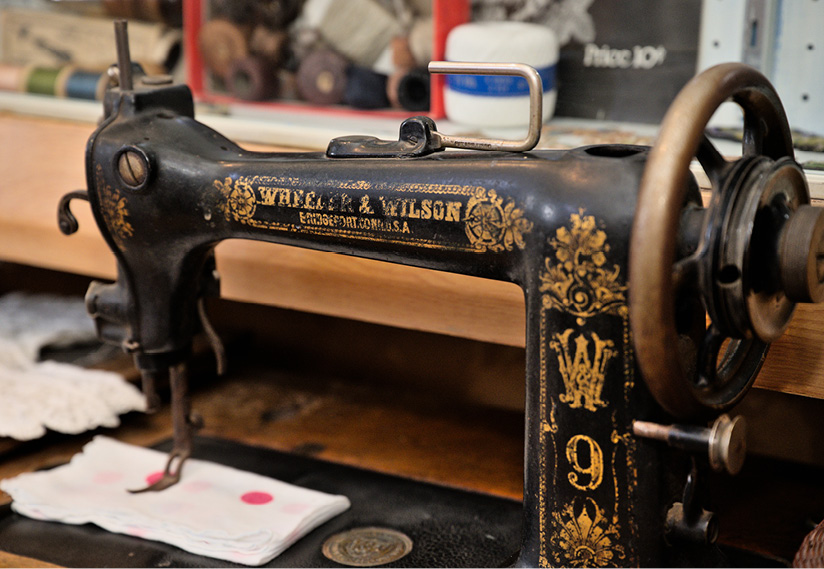 The Sewing Room has a collection of treadle sewing machines, buttons and other notions.  It was probably used to store table cloths, napkins, silverware and other banquet necessities.